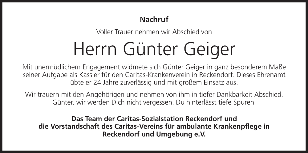 Hier finden Sie alle Traueranzeigen aus der Zeitung, die bisher für Günter Geiger erschienen sind. Weitere Traueranzeigen, die in der Zeitung erscheinen, werden hier ebenfalls aufgelistet