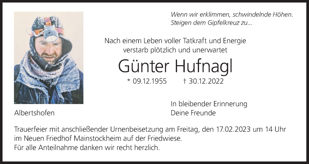 Hier finden Sie alle Traueranzeigen aus der Zeitung, die bisher für Günter Hufnagl erschienen sind. Weitere Traueranzeigen, die in der Zeitung erscheinen, werden hier ebenfalls aufgelistet