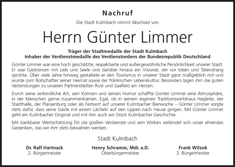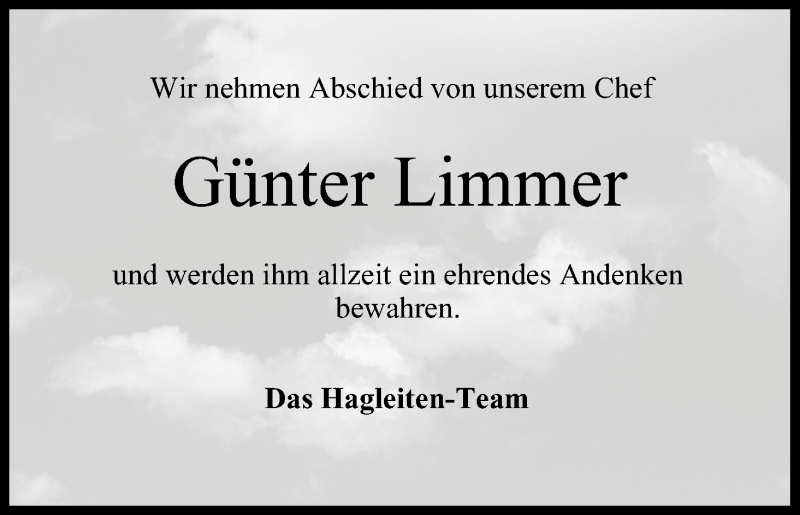 Hier finden Sie alle Traueranzeigen aus der Zeitung, die bisher für Günter Limmer erschienen sind. Weitere Traueranzeigen, die in der Zeitung erscheinen, werden hier ebenfalls aufgelistet