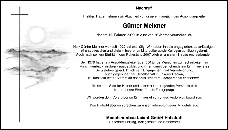 Hier finden Sie alle Traueranzeigen aus der Zeitung, die bisher für Günter Meixner erschienen sind. Weitere Traueranzeigen, die in der Zeitung erscheinen, werden hier ebenfalls aufgelistet