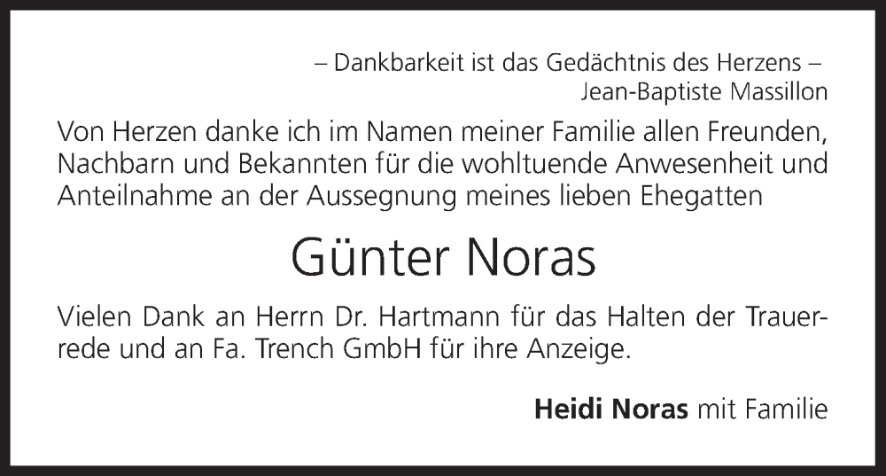 Hier finden Sie alle Traueranzeigen aus der Zeitung, die bisher für Günter Noras erschienen sind. Weitere Traueranzeigen, die in der Zeitung erscheinen, werden hier ebenfalls aufgelistet
