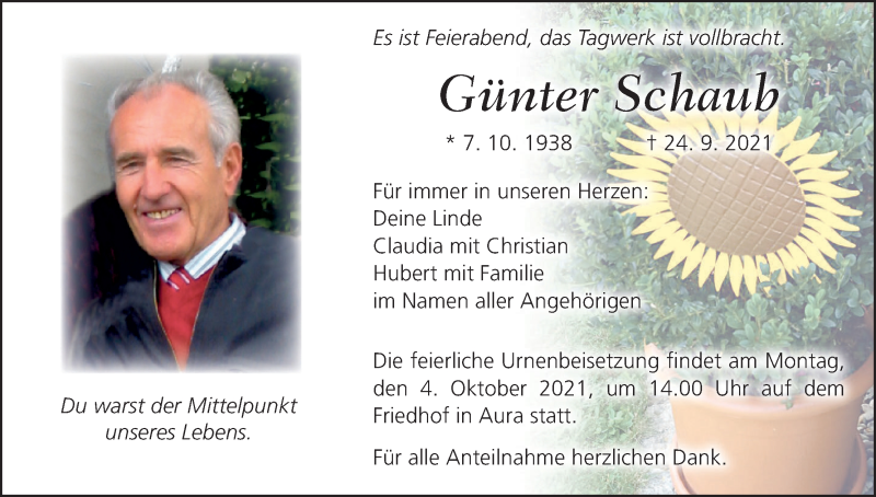 Hier finden Sie alle Traueranzeigen aus der Zeitung, die bisher für Günter Schaub erschienen sind. Weitere Traueranzeigen, die in der Zeitung erscheinen, werden hier ebenfalls aufgelistet