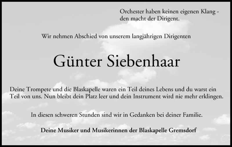 Hier finden Sie alle Traueranzeigen aus der Zeitung, die bisher für Günter Siebenhaar erschienen sind. Weitere Traueranzeigen, die in der Zeitung erscheinen, werden hier ebenfalls aufgelistet