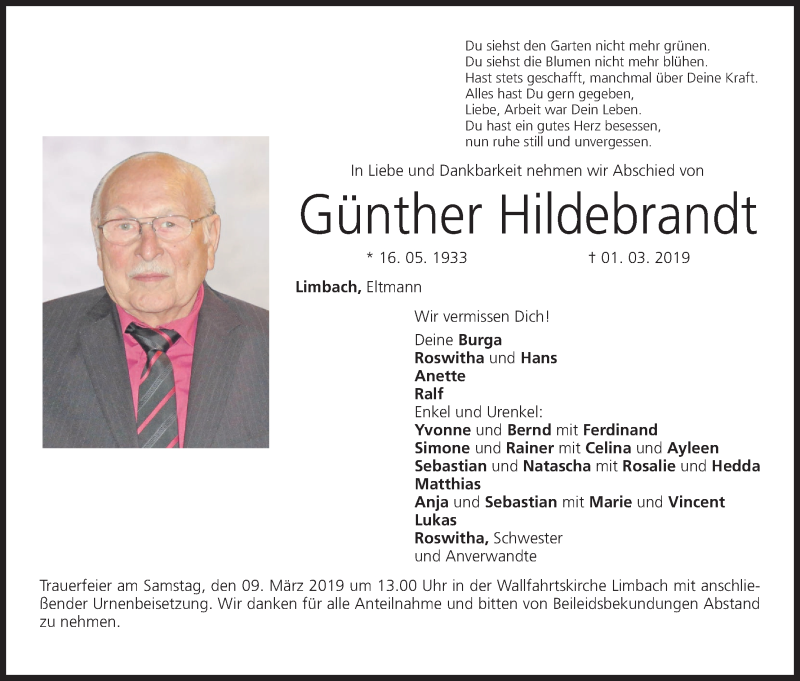 Hier finden Sie alle Traueranzeigen aus der Zeitung, die bisher für Günther Hildebrandt erschienen sind. Weitere Traueranzeigen, die in der Zeitung erscheinen, werden hier ebenfalls aufgelistet