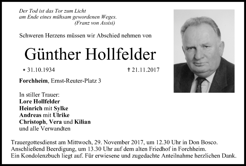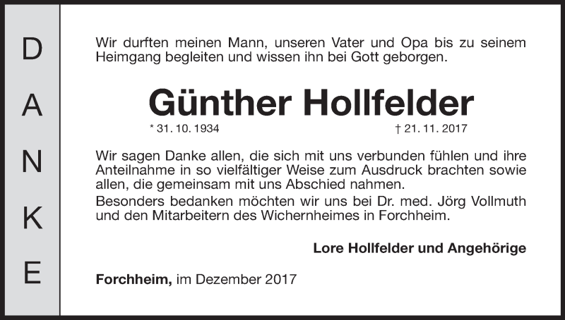 Hier finden Sie alle Traueranzeigen aus der Zeitung, die bisher für Günther Hollfelder erschienen sind. Weitere Traueranzeigen, die in der Zeitung erscheinen, werden hier ebenfalls aufgelistet