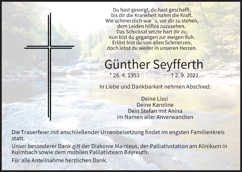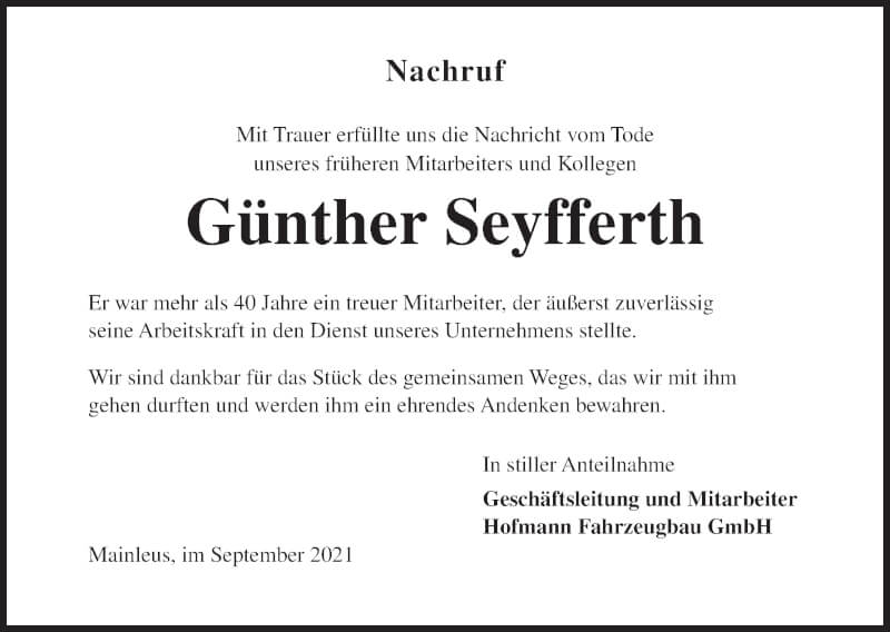 Hier finden Sie alle Traueranzeigen aus der Zeitung, die bisher für Günther Seyfferth erschienen sind. Weitere Traueranzeigen, die in der Zeitung erscheinen, werden hier ebenfalls aufgelistet