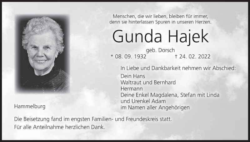 Hier finden Sie alle Traueranzeigen aus der Zeitung, die bisher für Gunda Hajek erschienen sind. Weitere Traueranzeigen, die in der Zeitung erscheinen, werden hier ebenfalls aufgelistet