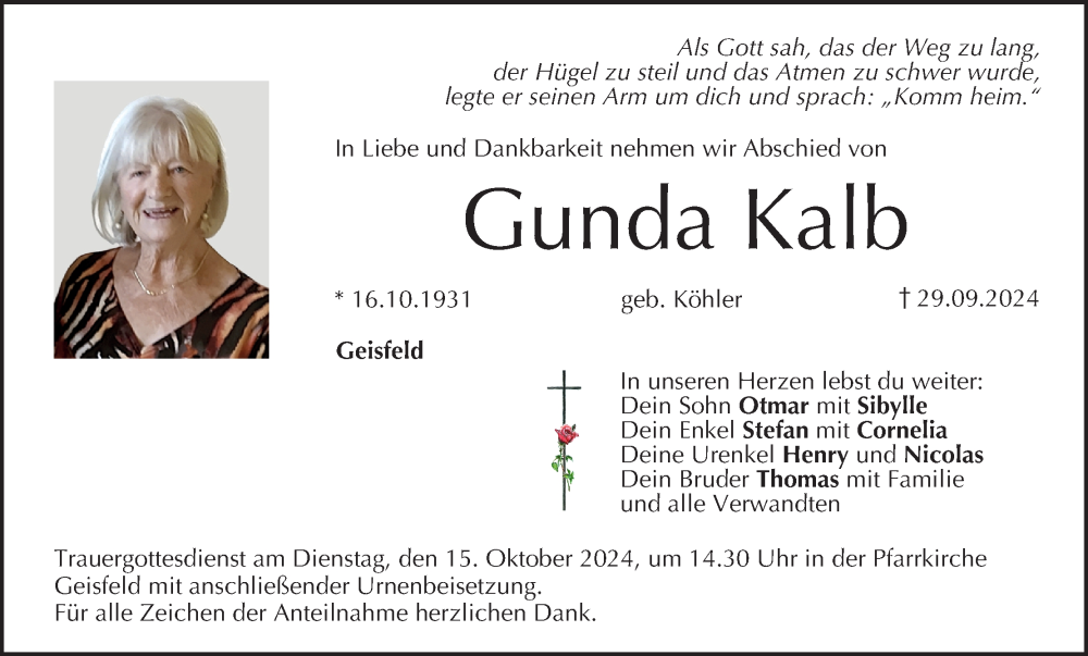 Hier finden Sie alle Traueranzeigen aus der Zeitung, die bisher für Gunda Kalb erschienen sind. Weitere Traueranzeigen, die in der Zeitung erscheinen, werden hier ebenfalls aufgelistet