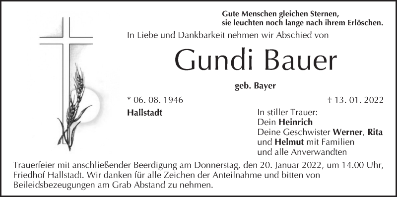 Hier finden Sie alle Traueranzeigen aus der Zeitung, die bisher für Gundi Bauer erschienen sind. Weitere Traueranzeigen, die in der Zeitung erscheinen, werden hier ebenfalls aufgelistet
