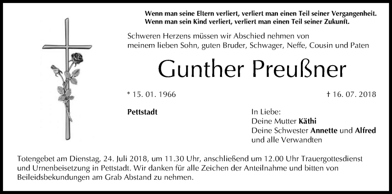 Hier finden Sie alle Traueranzeigen aus der Zeitung, die bisher für Gunther Preußner erschienen sind. Weitere Traueranzeigen, die in der Zeitung erscheinen, werden hier ebenfalls aufgelistet
