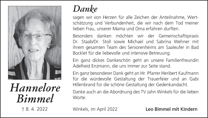 Hier finden Sie alle Traueranzeigen aus der Zeitung, die bisher für Hannelore Bimmel erschienen sind. Weitere Traueranzeigen, die in der Zeitung erscheinen, werden hier ebenfalls aufgelistet