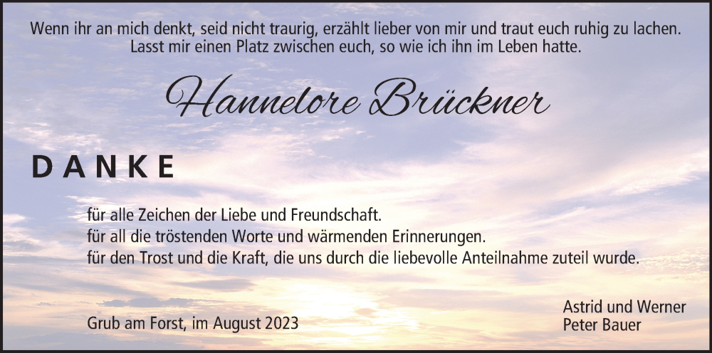 Hier finden Sie alle Traueranzeigen aus der Zeitung, die bisher für Hannelore Brückner erschienen sind. Weitere Traueranzeigen, die in der Zeitung erscheinen, werden hier ebenfalls aufgelistet