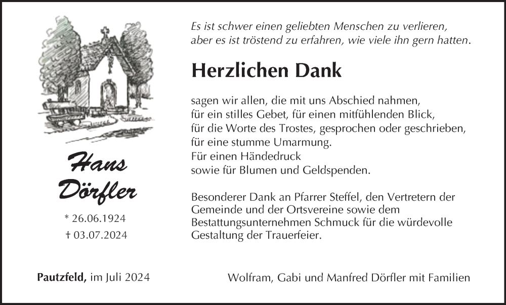 Hier finden Sie alle Traueranzeigen aus der Zeitung, die bisher für Hans Dörfler erschienen sind. Weitere Traueranzeigen, die in der Zeitung erscheinen, werden hier ebenfalls aufgelistet