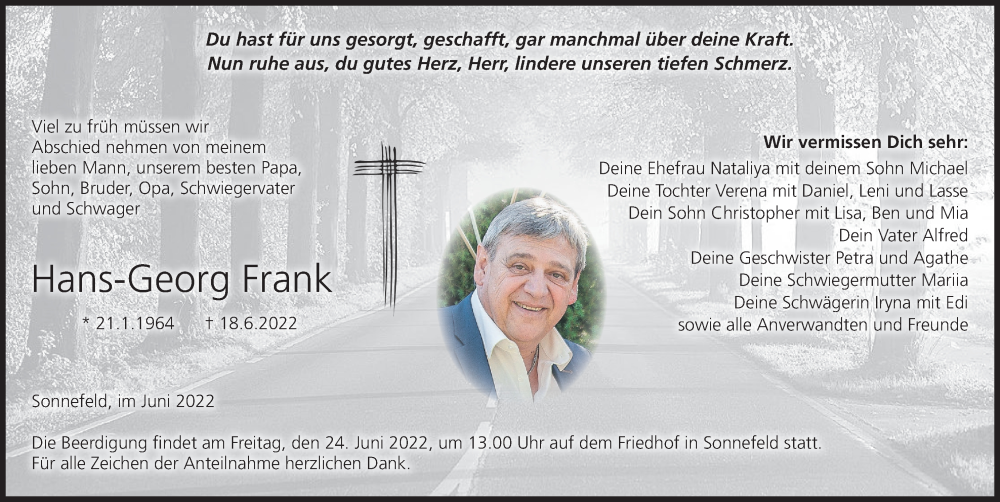 Hier finden Sie alle Traueranzeigen aus der Zeitung, die bisher für Hans-Georg Frank erschienen sind. Weitere Traueranzeigen, die in der Zeitung erscheinen, werden hier ebenfalls aufgelistet