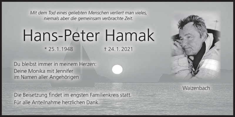 Hier finden Sie alle Traueranzeigen aus der Zeitung, die bisher für Hans-Peter Hamak erschienen sind. Weitere Traueranzeigen, die in der Zeitung erscheinen, werden hier ebenfalls aufgelistet