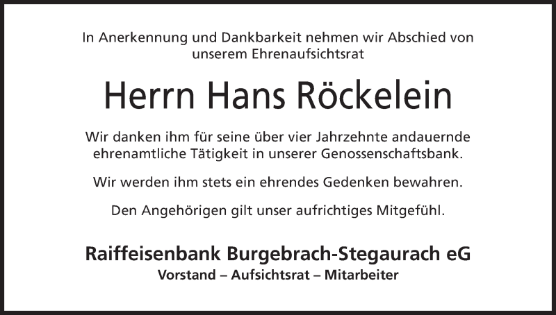 Hier finden Sie alle Traueranzeigen aus der Zeitung, die bisher für Hans Röckelein erschienen sind. Weitere Traueranzeigen, die in der Zeitung erscheinen, werden hier ebenfalls aufgelistet