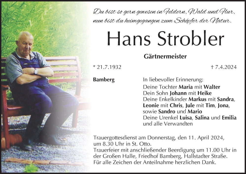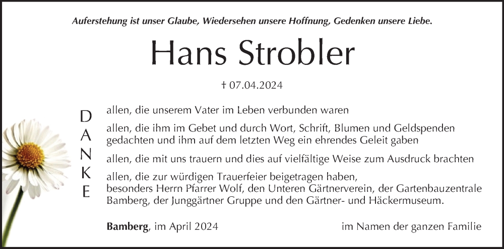 Hier finden Sie alle Traueranzeigen aus der Zeitung, die bisher für Hans Strobler erschienen sind. Weitere Traueranzeigen, die in der Zeitung erscheinen, werden hier ebenfalls aufgelistet