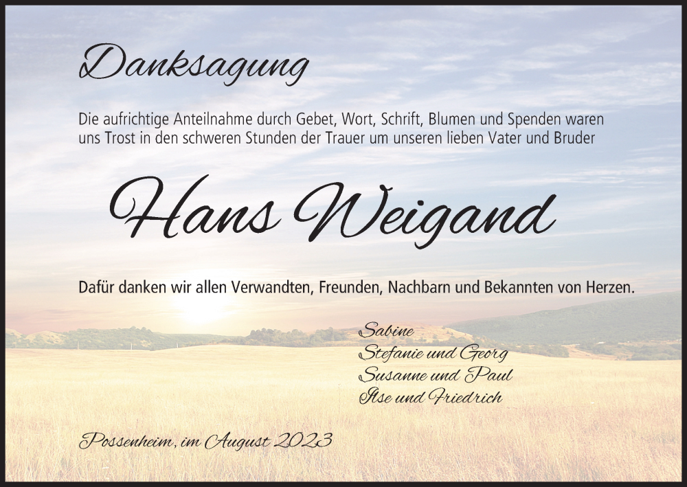 Hier finden Sie alle Traueranzeigen aus der Zeitung, die bisher für Hans Weigand erschienen sind. Weitere Traueranzeigen, die in der Zeitung erscheinen, werden hier ebenfalls aufgelistet