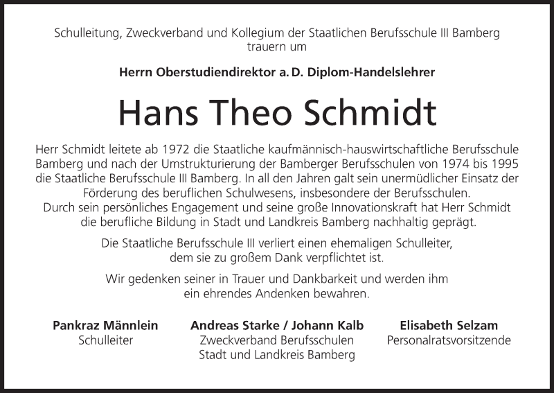 Hier finden Sie alle Traueranzeigen aus der Zeitung, die bisher für Hans Theo Schmidt erschienen sind. Weitere Traueranzeigen, die in der Zeitung erscheinen, werden hier ebenfalls aufgelistet