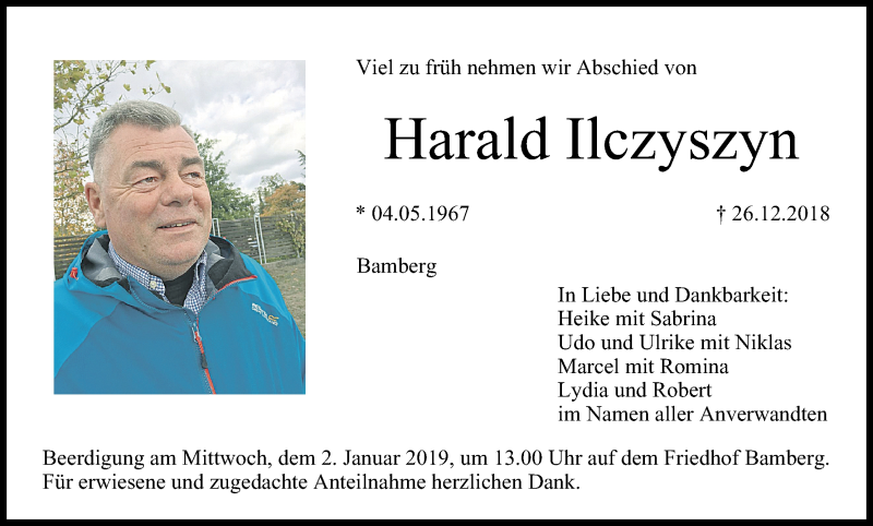 Hier finden Sie alle Traueranzeigen aus der Zeitung, die bisher für Harald Ilczyszyn erschienen sind. Weitere Traueranzeigen, die in der Zeitung erscheinen, werden hier ebenfalls aufgelistet