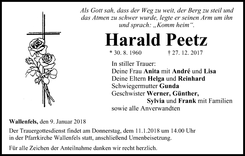 Hier finden Sie alle Traueranzeigen aus der Zeitung, die bisher für Harald Peetz erschienen sind. Weitere Traueranzeigen, die in der Zeitung erscheinen, werden hier ebenfalls aufgelistet