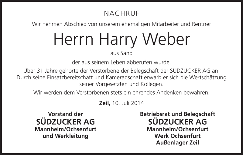 Hier finden Sie alle Traueranzeigen aus der Zeitung, die bisher für Harry Weber erschienen sind. Weitere Traueranzeigen, die in der Zeitung erscheinen, werden hier ebenfalls aufgelistet