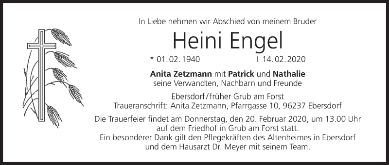 Hier finden Sie alle Traueranzeigen aus der Zeitung, die bisher für Heini Engel erschienen sind. Weitere Traueranzeigen, die in der Zeitung erscheinen, werden hier ebenfalls aufgelistet