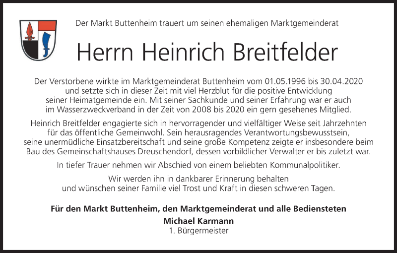 Hier finden Sie alle Traueranzeigen aus der Zeitung, die bisher für Heinrich Breitfelder erschienen sind. Weitere Traueranzeigen, die in der Zeitung erscheinen, werden hier ebenfalls aufgelistet
