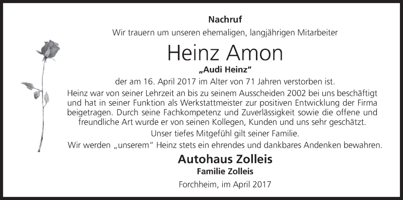 Hier finden Sie alle Traueranzeigen aus der Zeitung, die bisher für Heinz Amon erschienen sind. Weitere Traueranzeigen, die in der Zeitung erscheinen, werden hier ebenfalls aufgelistet