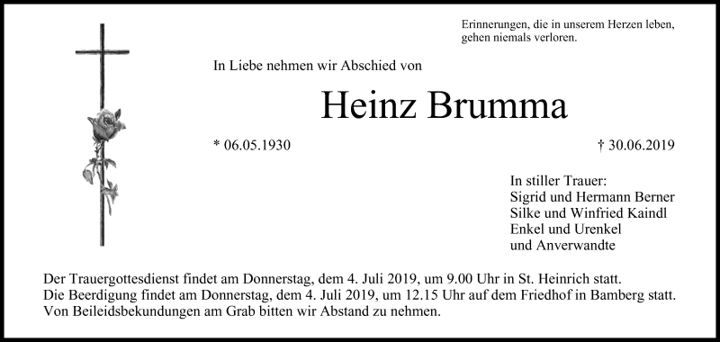 Hier finden Sie alle Traueranzeigen aus der Zeitung, die bisher für Heinz Brumma erschienen sind. Weitere Traueranzeigen, die in der Zeitung erscheinen, werden hier ebenfalls aufgelistet