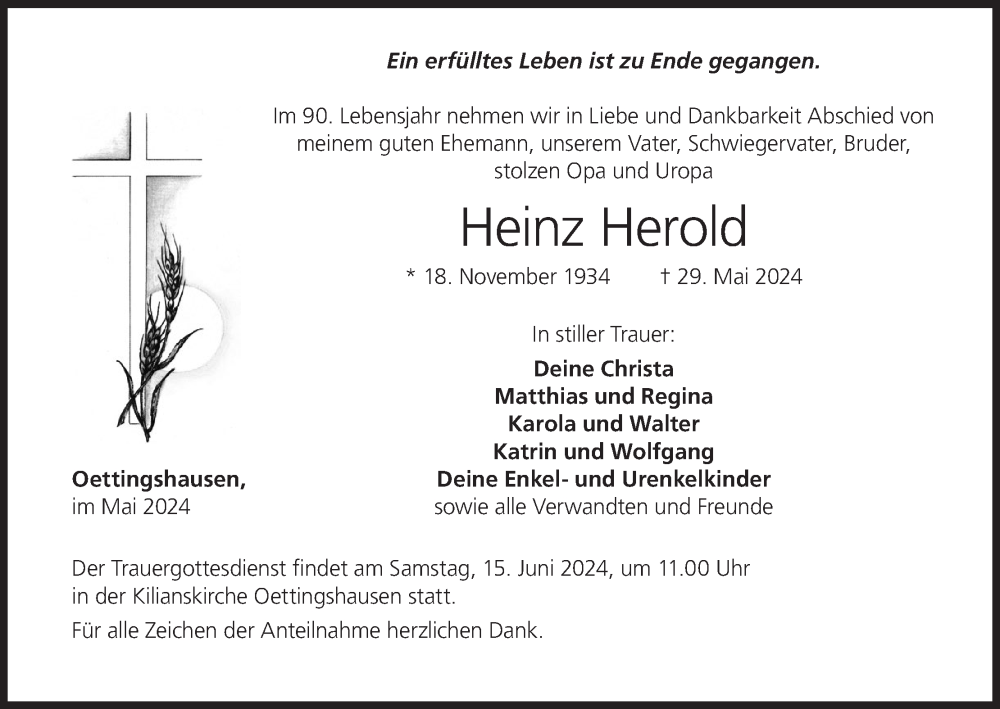 Hier finden Sie alle Traueranzeigen aus der Zeitung, die bisher für Heinz Herold erschienen sind. Weitere Traueranzeigen, die in der Zeitung erscheinen, werden hier ebenfalls aufgelistet