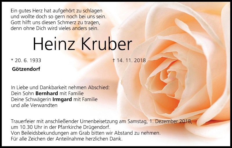 Hier finden Sie alle Traueranzeigen aus der Zeitung, die bisher für Heinz Kruber erschienen sind. Weitere Traueranzeigen, die in der Zeitung erscheinen, werden hier ebenfalls aufgelistet