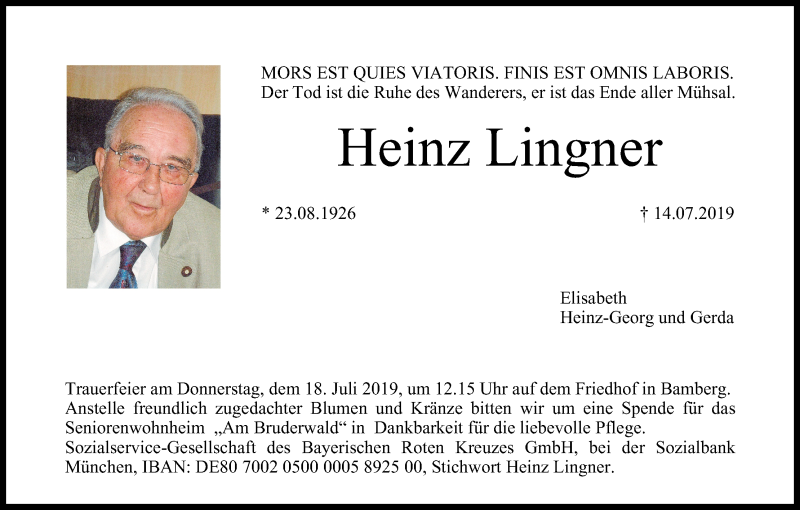 Hier finden Sie alle Traueranzeigen aus der Zeitung, die bisher für Heinz Lingner erschienen sind. Weitere Traueranzeigen, die in der Zeitung erscheinen, werden hier ebenfalls aufgelistet