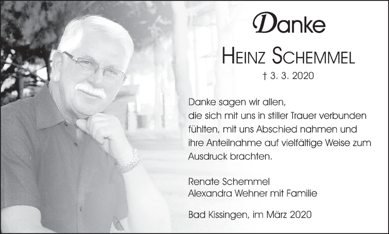 Hier finden Sie alle Traueranzeigen aus der Zeitung, die bisher für Heinz Schemmel erschienen sind. Weitere Traueranzeigen, die in der Zeitung erscheinen, werden hier ebenfalls aufgelistet
