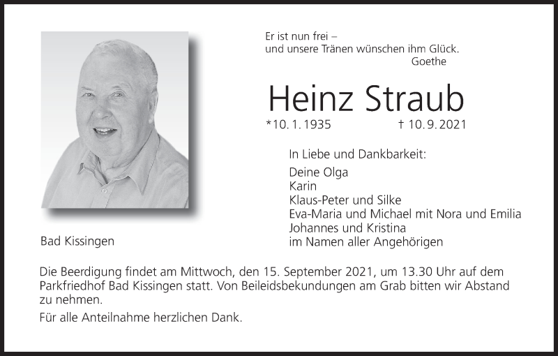 Hier finden Sie alle Traueranzeigen aus der Zeitung, die bisher für Heinz Straub erschienen sind. Weitere Traueranzeigen, die in der Zeitung erscheinen, werden hier ebenfalls aufgelistet