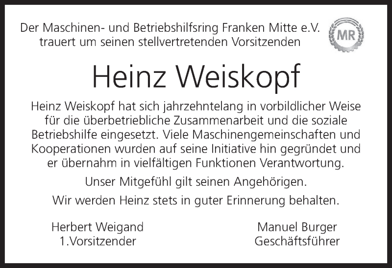 Hier finden Sie alle Traueranzeigen aus der Zeitung, die bisher für Heinz Weiskopf erschienen sind. Weitere Traueranzeigen, die in der Zeitung erscheinen, werden hier ebenfalls aufgelistet