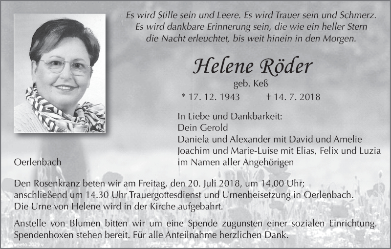 Hier finden Sie alle Traueranzeigen aus der Zeitung, die bisher für Helene Röder erschienen sind. Weitere Traueranzeigen, die in der Zeitung erscheinen, werden hier ebenfalls aufgelistet