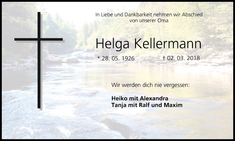 Hier finden Sie alle Traueranzeigen aus der Zeitung, die bisher für Helga Kellermann erschienen sind. Weitere Traueranzeigen, die in der Zeitung erscheinen, werden hier ebenfalls aufgelistet