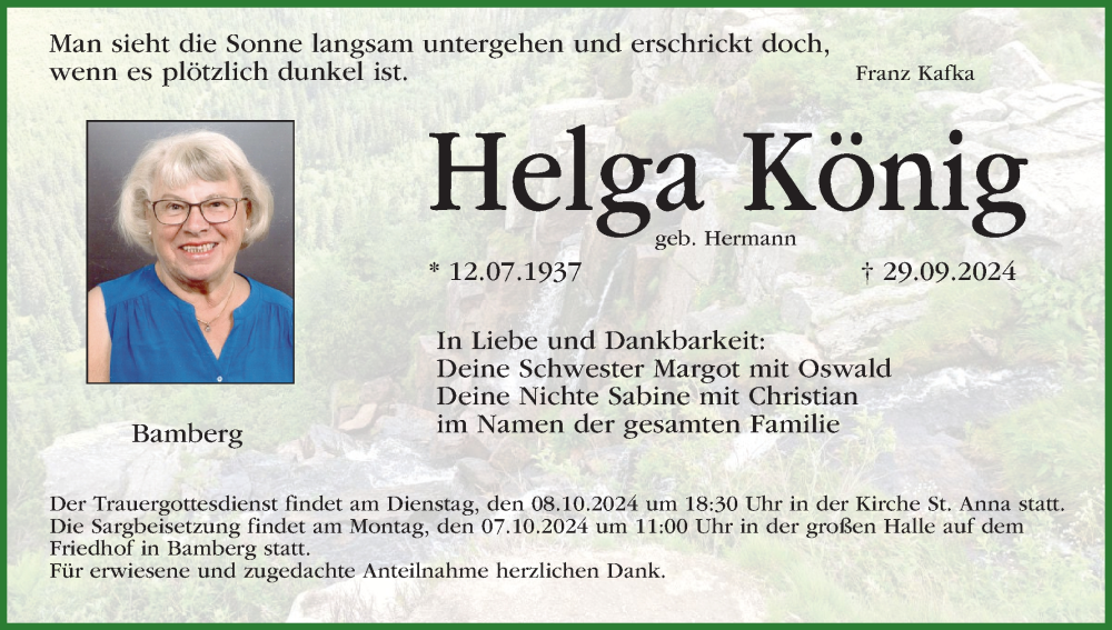 Hier finden Sie alle Traueranzeigen aus der Zeitung, die bisher für Helga König erschienen sind. Weitere Traueranzeigen, die in der Zeitung erscheinen, werden hier ebenfalls aufgelistet