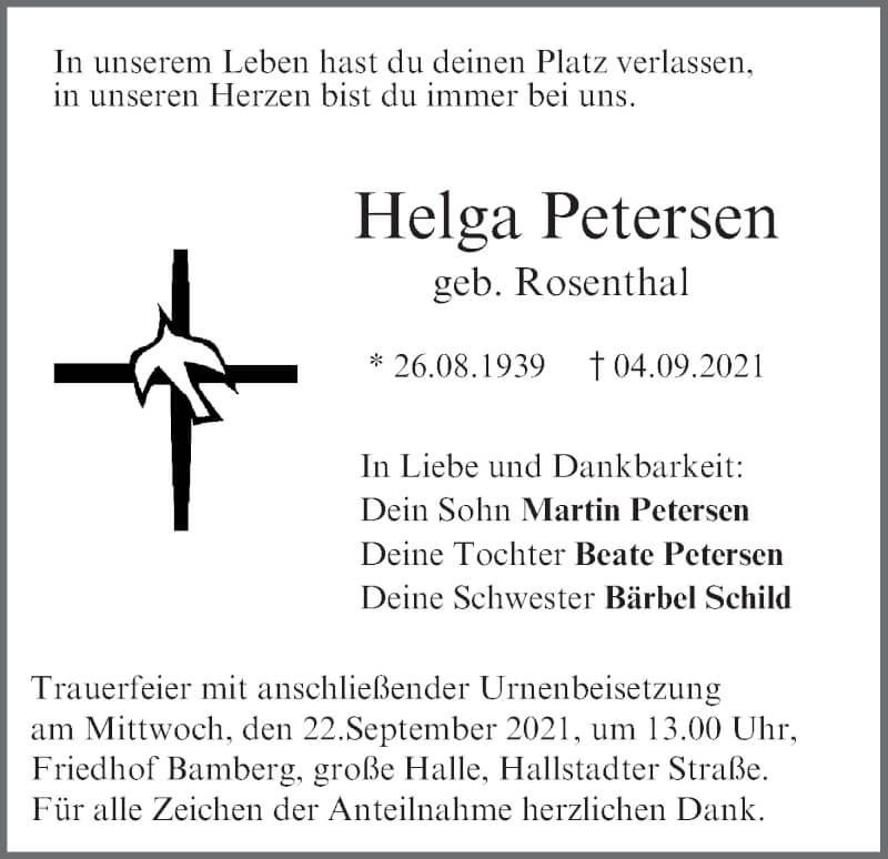 Hier finden Sie alle Traueranzeigen aus der Zeitung, die bisher für Helga Petersen erschienen sind. Weitere Traueranzeigen, die in der Zeitung erscheinen, werden hier ebenfalls aufgelistet