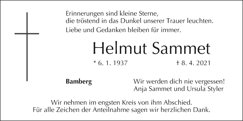 Hier finden Sie alle Traueranzeigen aus der Zeitung, die bisher für Helmut Sammet erschienen sind. Weitere Traueranzeigen, die in der Zeitung erscheinen, werden hier ebenfalls aufgelistet