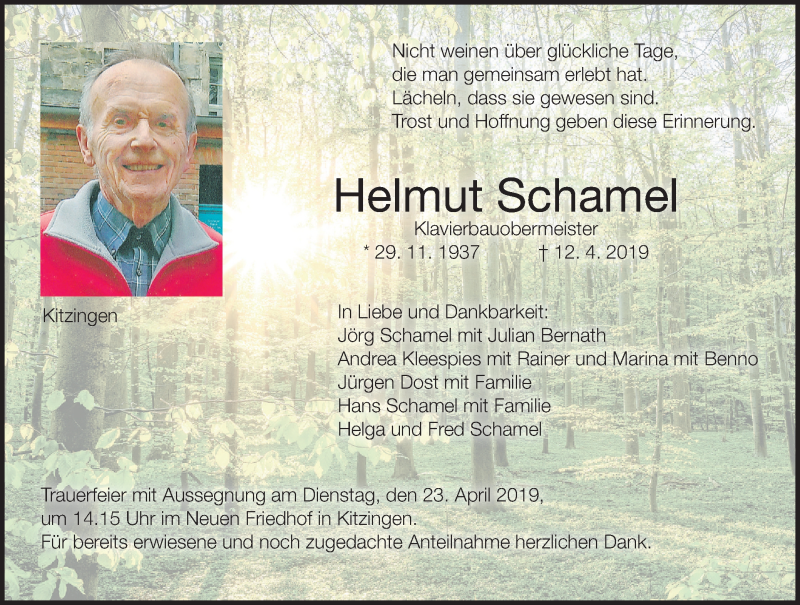 Hier finden Sie alle Traueranzeigen aus der Zeitung, die bisher für Helmut Schamel erschienen sind. Weitere Traueranzeigen, die in der Zeitung erscheinen, werden hier ebenfalls aufgelistet