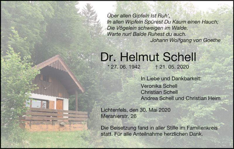 Hier finden Sie alle Traueranzeigen aus der Zeitung, die bisher für Helmut Schell erschienen sind. Weitere Traueranzeigen, die in der Zeitung erscheinen, werden hier ebenfalls aufgelistet