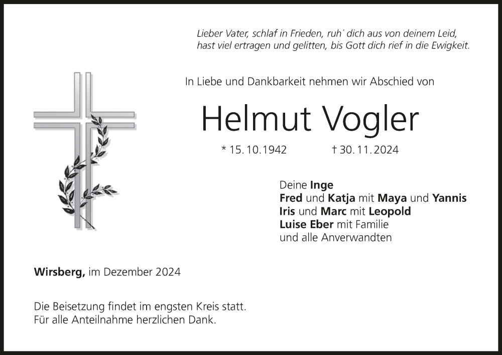 Hier finden Sie alle Traueranzeigen aus der Zeitung, die bisher für Helmut Vogler erschienen sind. Weitere Traueranzeigen, die in der Zeitung erscheinen, werden hier ebenfalls aufgelistet
