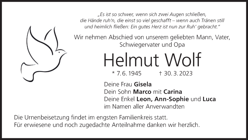 Hier finden Sie alle Traueranzeigen aus der Zeitung, die bisher für Helmut Wolf erschienen sind. Weitere Traueranzeigen, die in der Zeitung erscheinen, werden hier ebenfalls aufgelistet