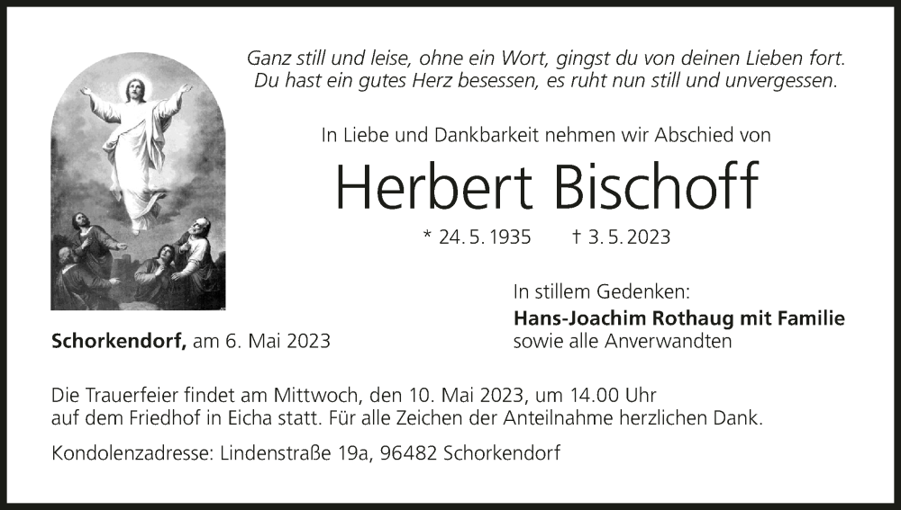 Hier finden Sie alle Traueranzeigen aus der Zeitung, die bisher für Herbert Bischoff erschienen sind. Weitere Traueranzeigen, die in der Zeitung erscheinen, werden hier ebenfalls aufgelistet
