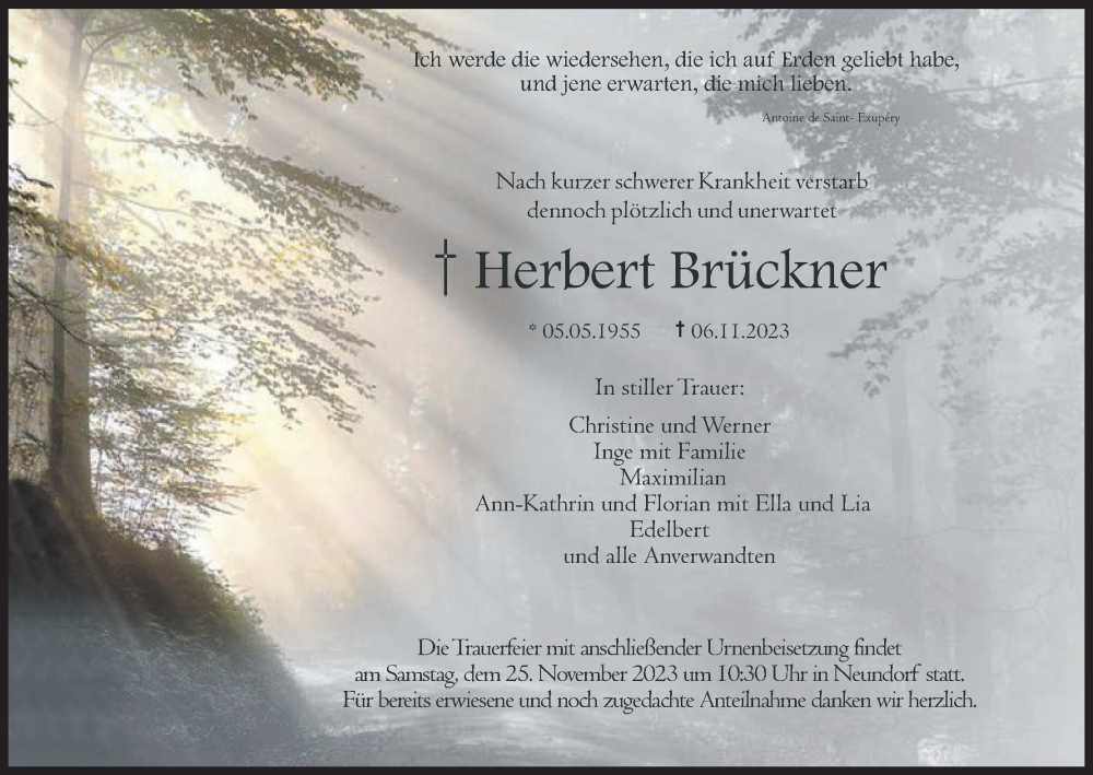 Hier finden Sie alle Traueranzeigen aus der Zeitung, die bisher für Herbert Brückner erschienen sind. Weitere Traueranzeigen, die in der Zeitung erscheinen, werden hier ebenfalls aufgelistet