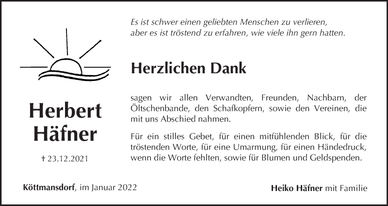 Hier finden Sie alle Traueranzeigen aus der Zeitung, die bisher für Herbert Häfner erschienen sind. Weitere Traueranzeigen, die in der Zeitung erscheinen, werden hier ebenfalls aufgelistet