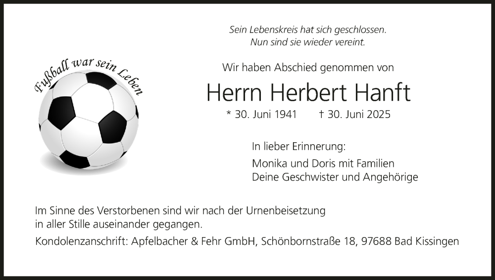 Hier finden Sie alle Traueranzeigen aus der Zeitung, die bisher für Herbert Hanft erschienen sind. Weitere Traueranzeigen, die in der Zeitung erscheinen, werden hier ebenfalls aufgelistet