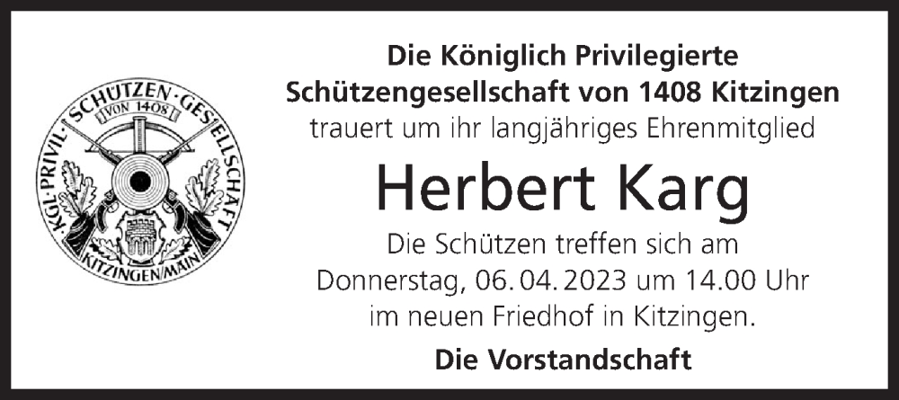 Hier finden Sie alle Traueranzeigen aus der Zeitung, die bisher für Herbert Karg erschienen sind. Weitere Traueranzeigen, die in der Zeitung erscheinen, werden hier ebenfalls aufgelistet